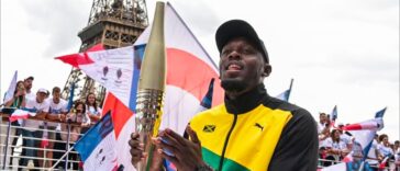 Usain Bolt scoring and leading his World XI to a fifth straight win over the England XI at Soccer Aid 2023.